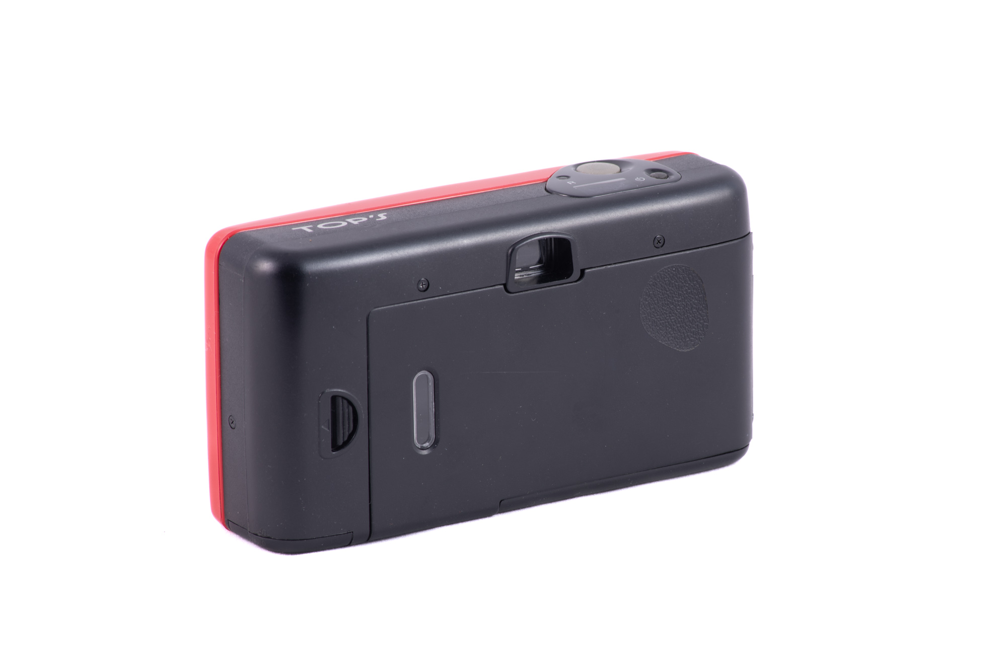 Appareil compact en plastique avec une façade rouge vif.